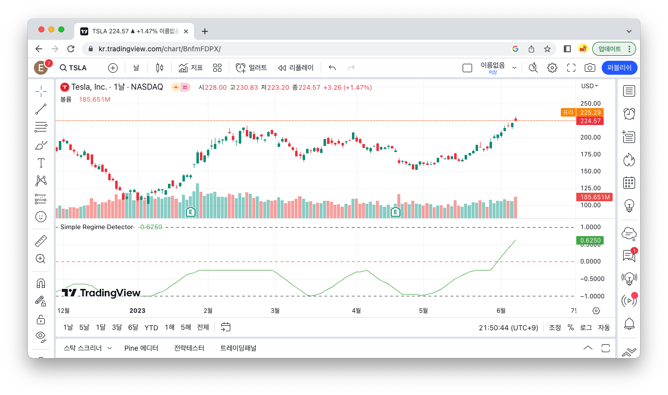 하지만 이 예시에서 제시된 시장 상황 감지 알고리즘은 단순히 개념적인 이해를 돕기 위한 것일 뿐이므로, 실제 트레이딩에 활용하기 위해서는 추가적인 검증과 수정이 필요합니다. 트레이더들은 이 예시를 참고하여 자신에게 맞는 시장 상황 감지 지표를 개발하고 테스트해보는 것이 좋습니다. 또한, 트레이딩을 위한 자동화된 시스템을 개발하거나 사용할 때에는 적절한 리스크 관리와 모니터링이 필요하며, 실전에 투입하기 전에 충분한 백테스트와 실제 데이터와의 비교 평가가 필요합니다.